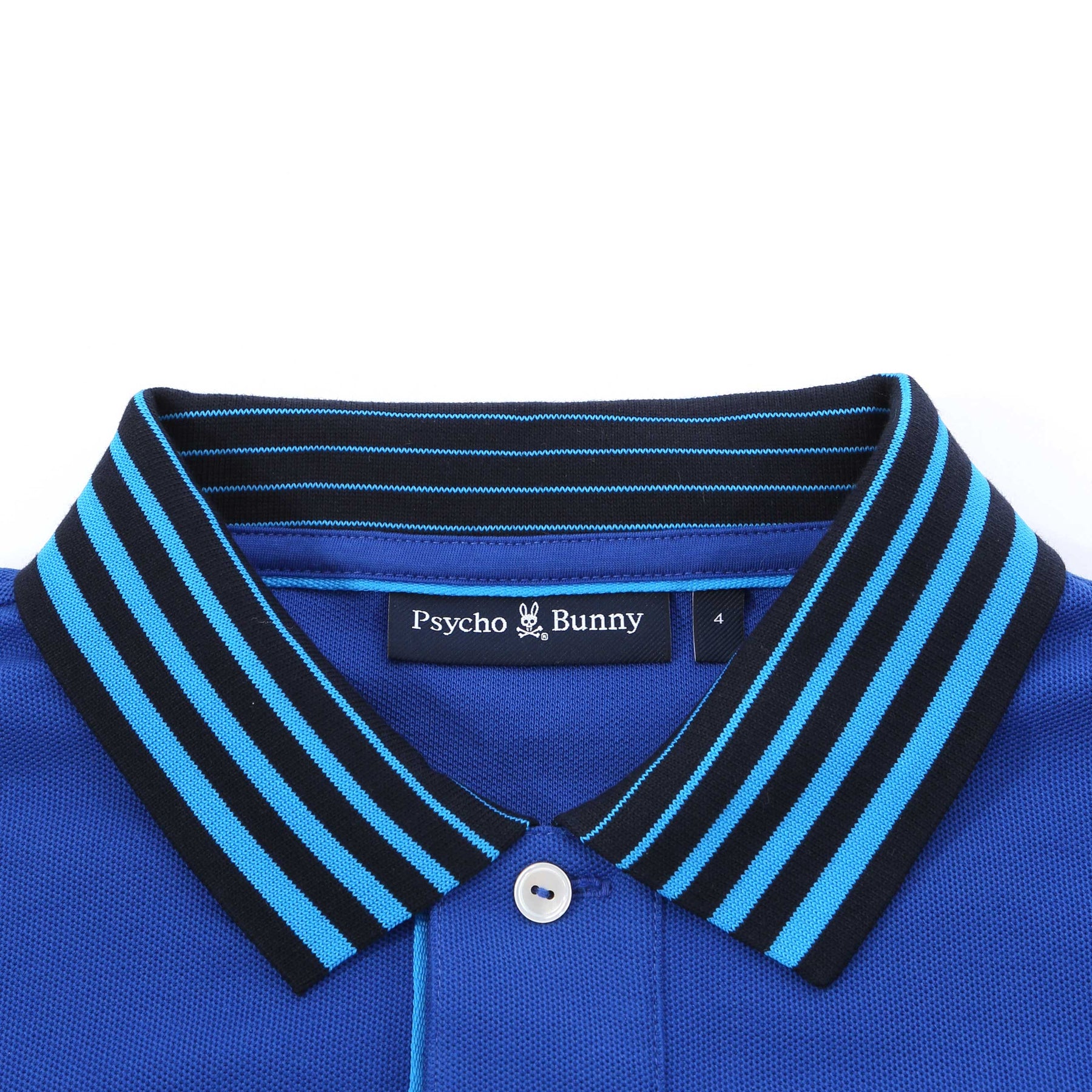 Psycho Bunny Norris Pique Polo Shirt in Surf The Web. A classic style polo shirt by Psycho Bunny. Classic polo collar with a 2-button placket. Contrasting colour collar and cuffs with stripe detailing. Signature bunny logo on the left breast. The perfect everyday polo shirt.