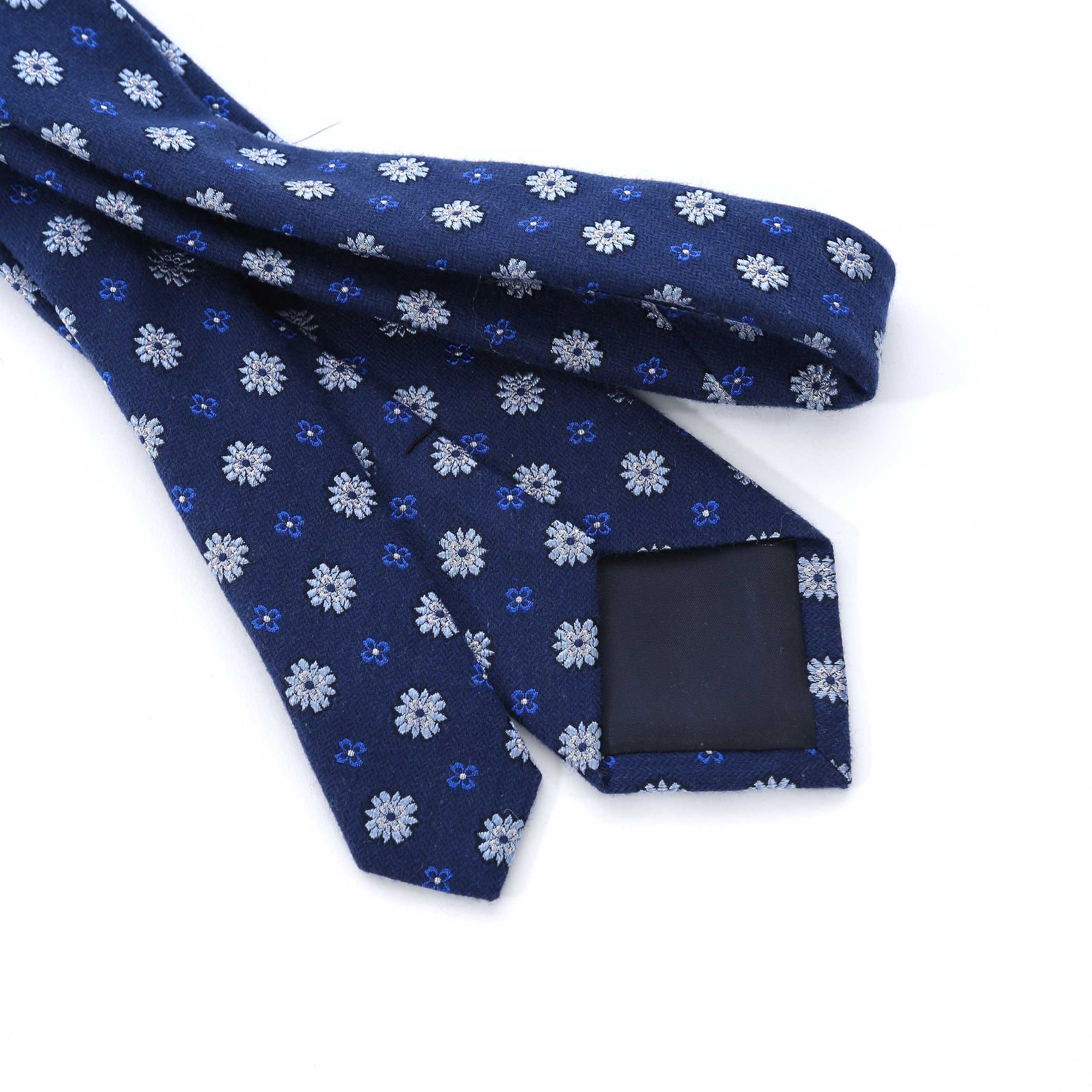 Remus Uomo Geometric Floral Tie & Hank Set in Navy. Tie & Hank set by Van Buck. A classic style design tie. Square Handkerchief. Both the tie and handkerchief arrive with a geometric floral design. Crafted from a silk cotton mix. Team up with your tailoring for a sophisticated look.
