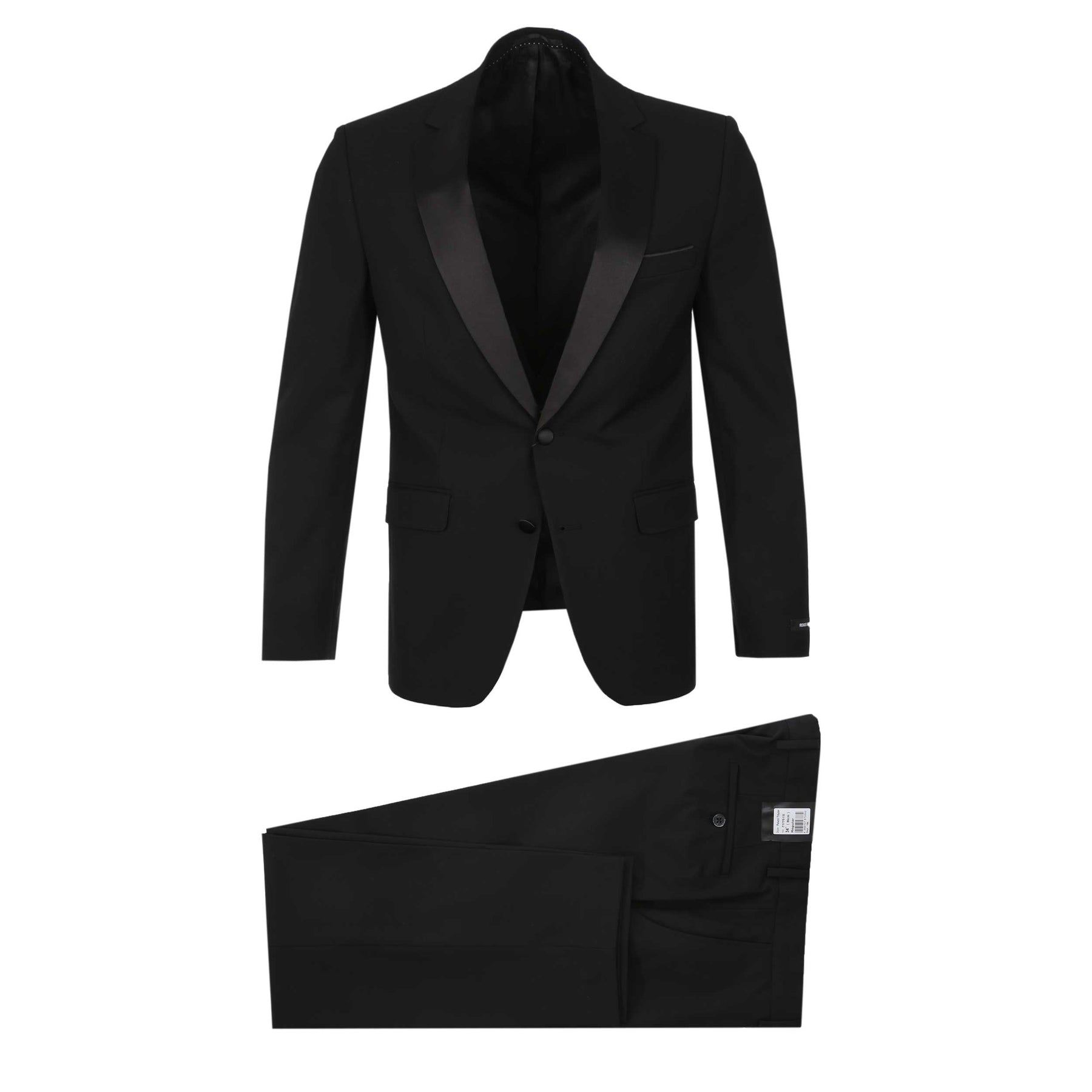 - Satin notch lapels for an added elegance.