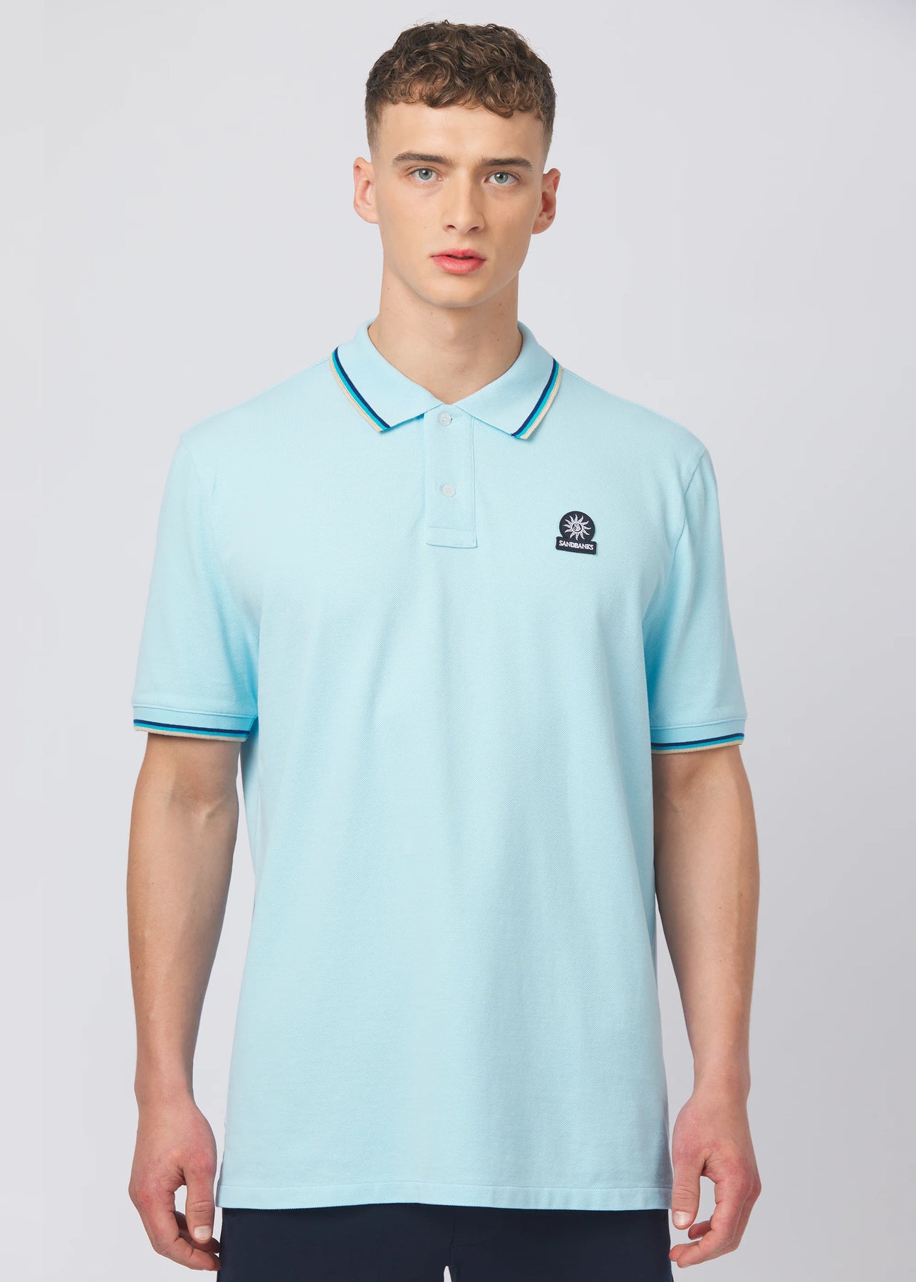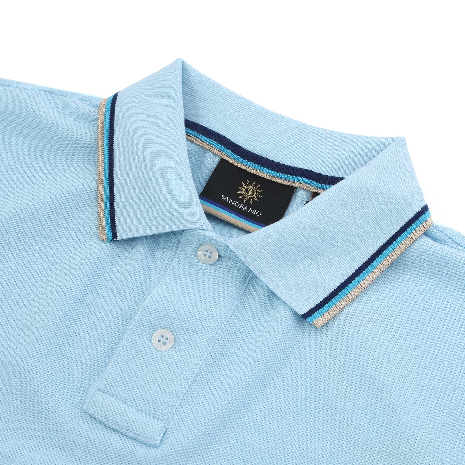Sandbanks Badge Logo Tipped Polo Shirt in Crystal Blue