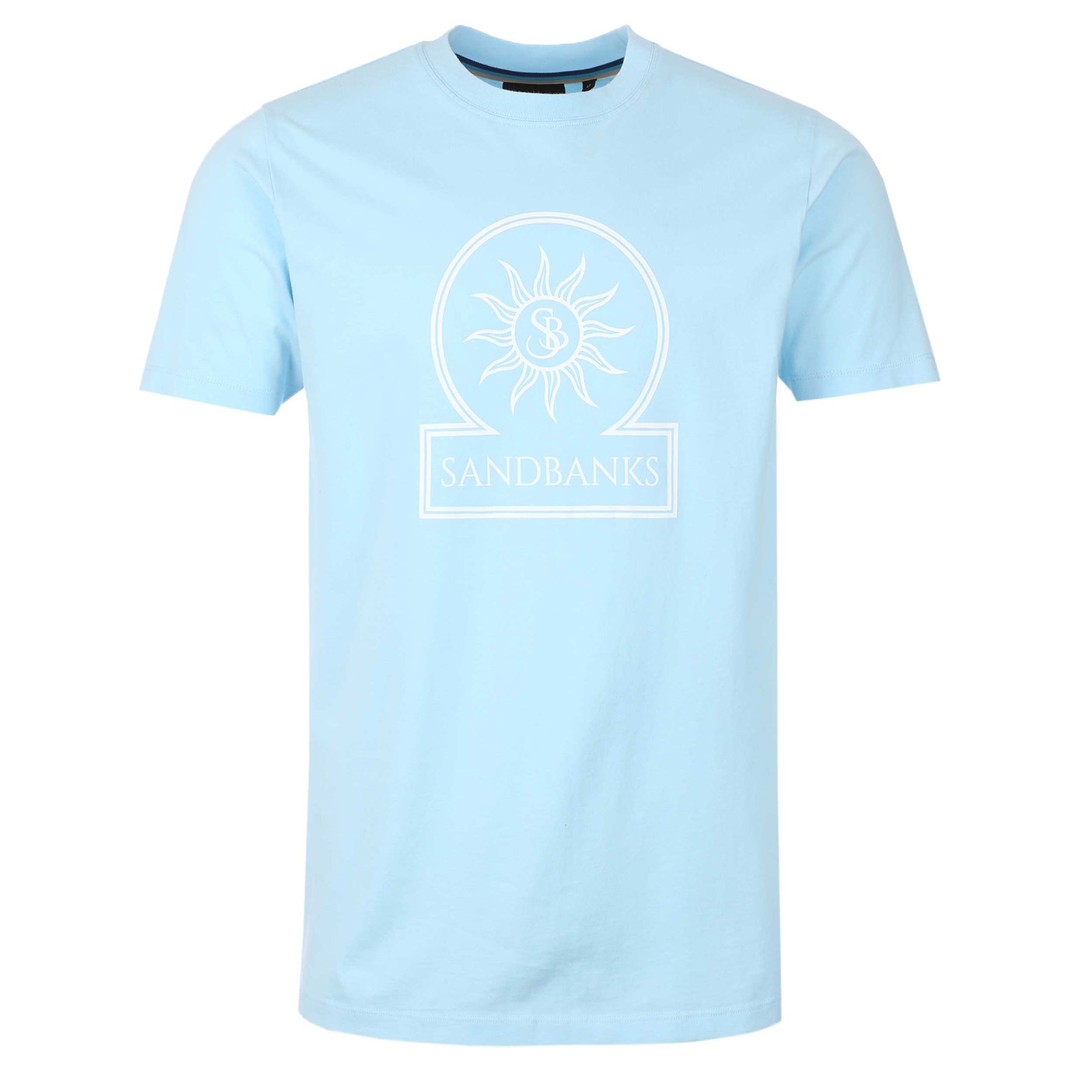 Sandbanks Logo Graphic T Shirt in Crystal Blue. T-shirt by Sandbanks. Regular fit t shirt with short sleeves and a crew neck. Constructed from a mercerised cotton for a luxurious feel. Printed Sandbanks logo to the front in a contrasting colour.