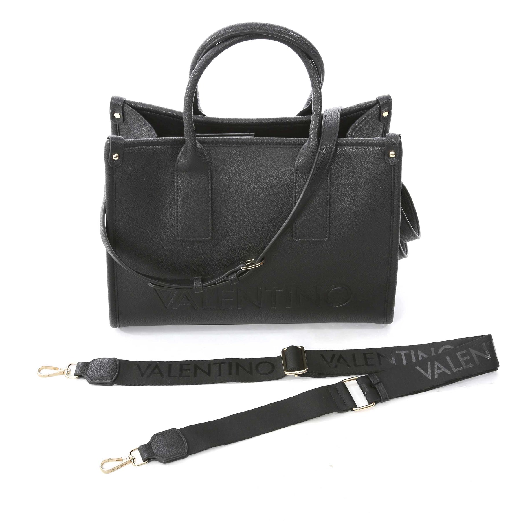 This stylish bag also includes two detachable shoulder straps, giving you the flexibility to switch up your look in a matter of seconds. The striking large Valentino embossed branding across the front adds a touch of sophistication, complemented by elegant gold hardware throughout, ensuring that you stand out in any crowd.