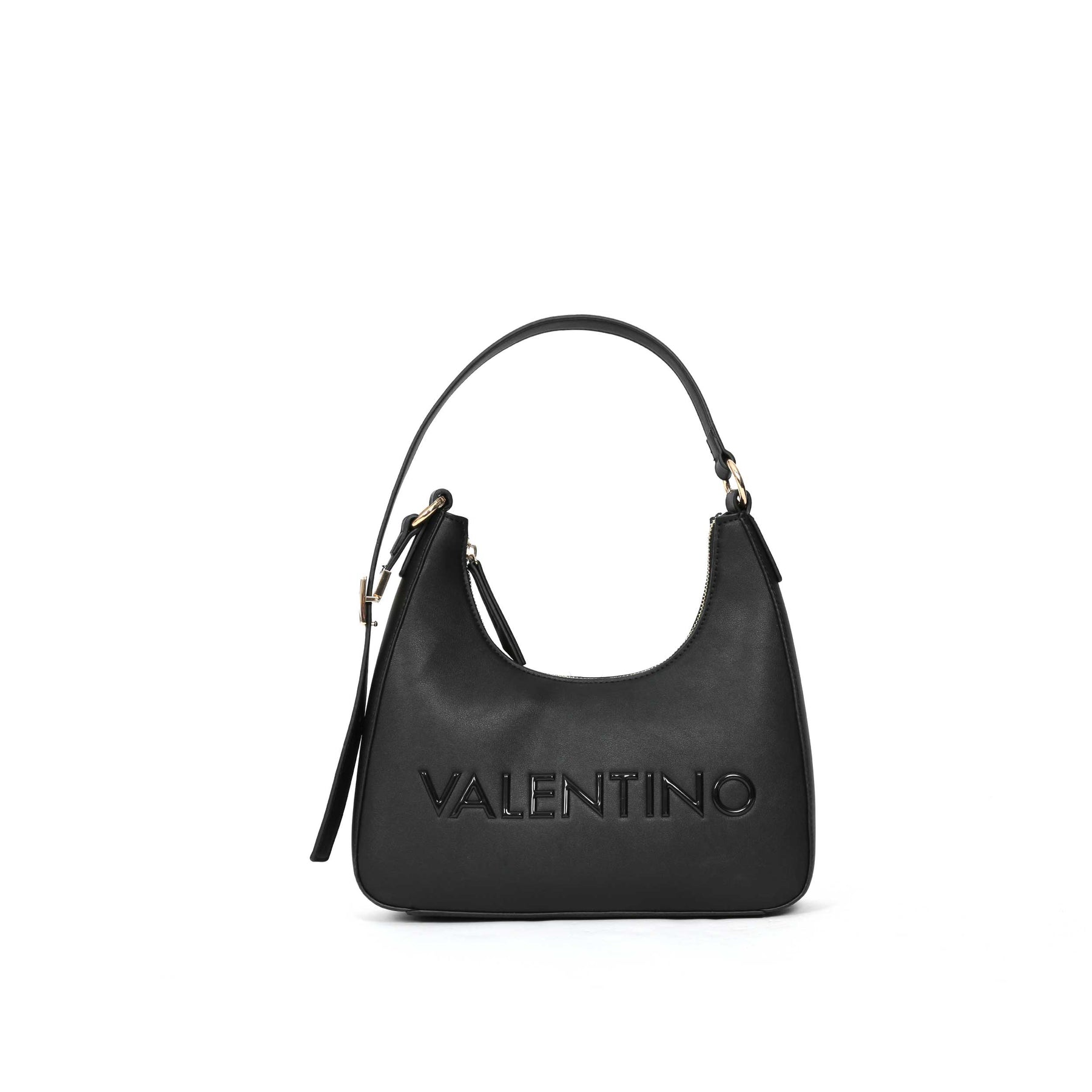 Valentino Bags Neasy RE Hobo Bag in Black. A classic medium shopper style bag style by Valentino Bags. Featuring a carrier handle and Valentino lettering logo with a textured finish. Zip fastening to the inside with a zip inside pocket. Finished with Valentino branding across the front and gold hardware throughout.