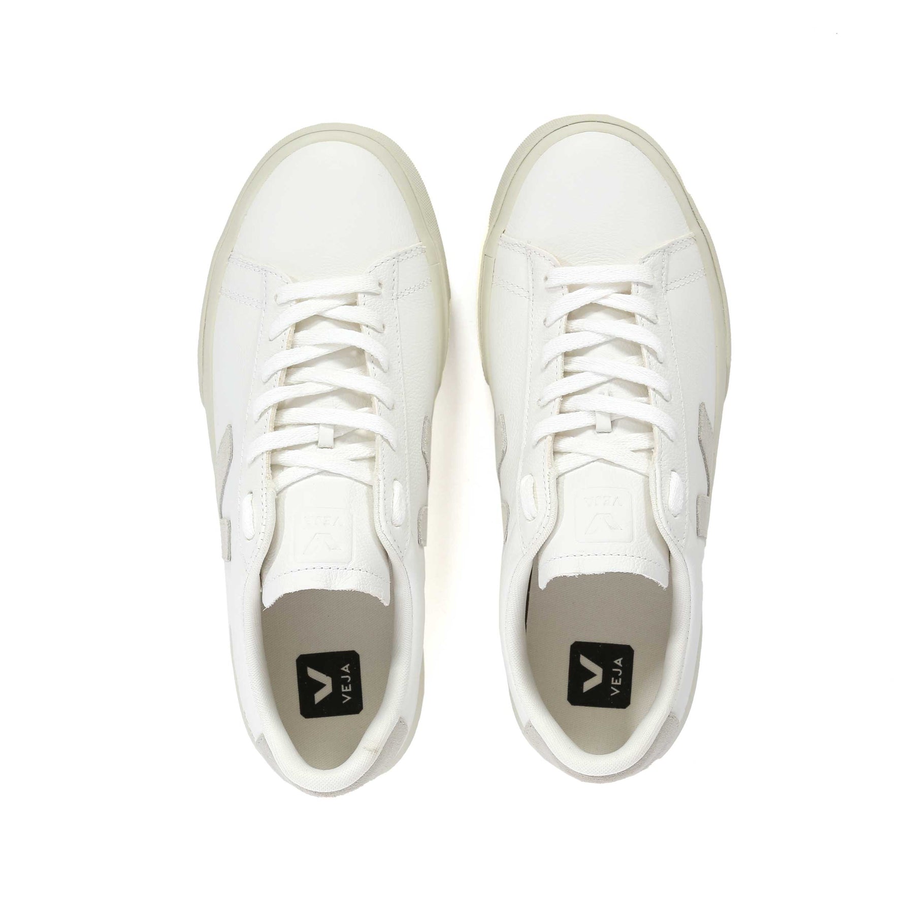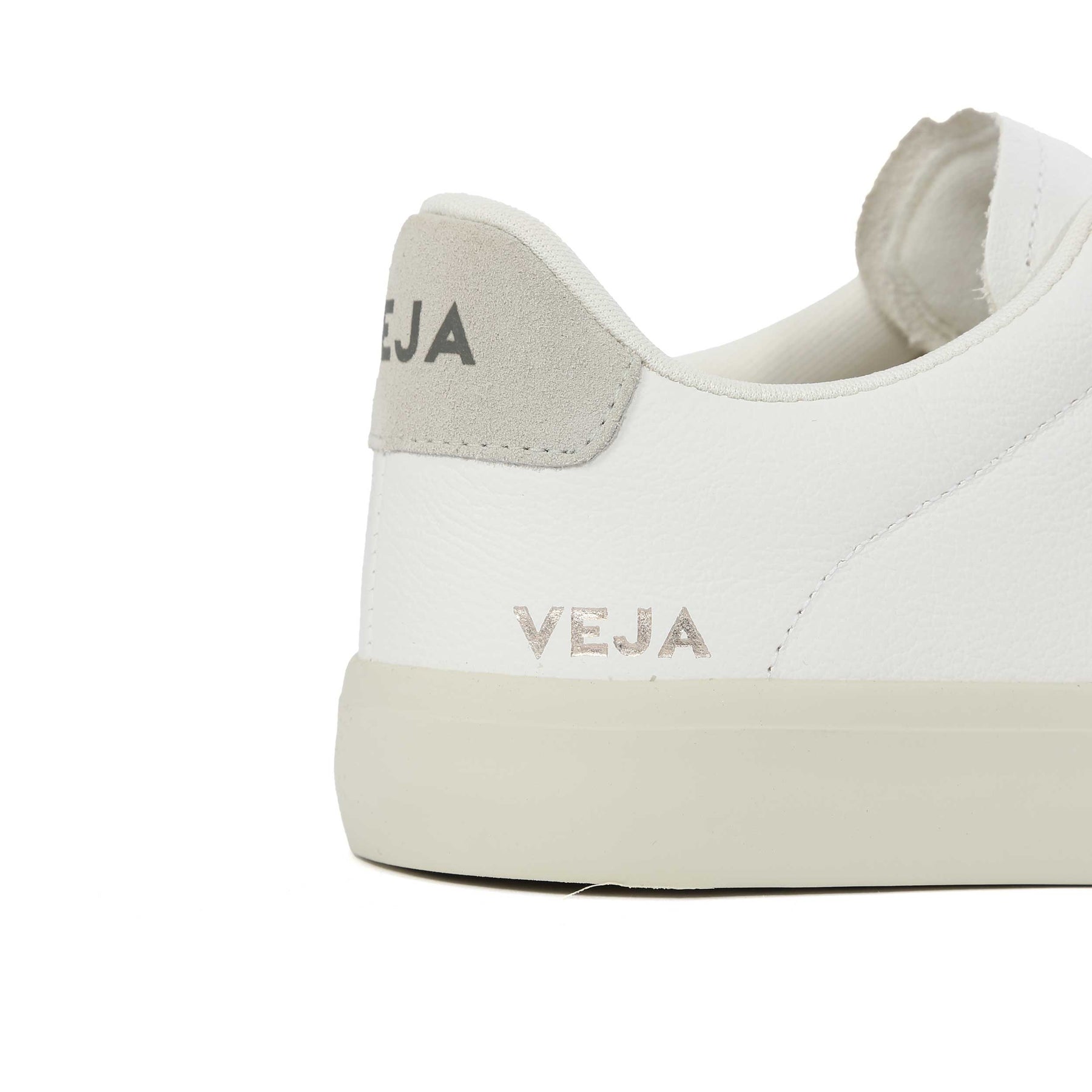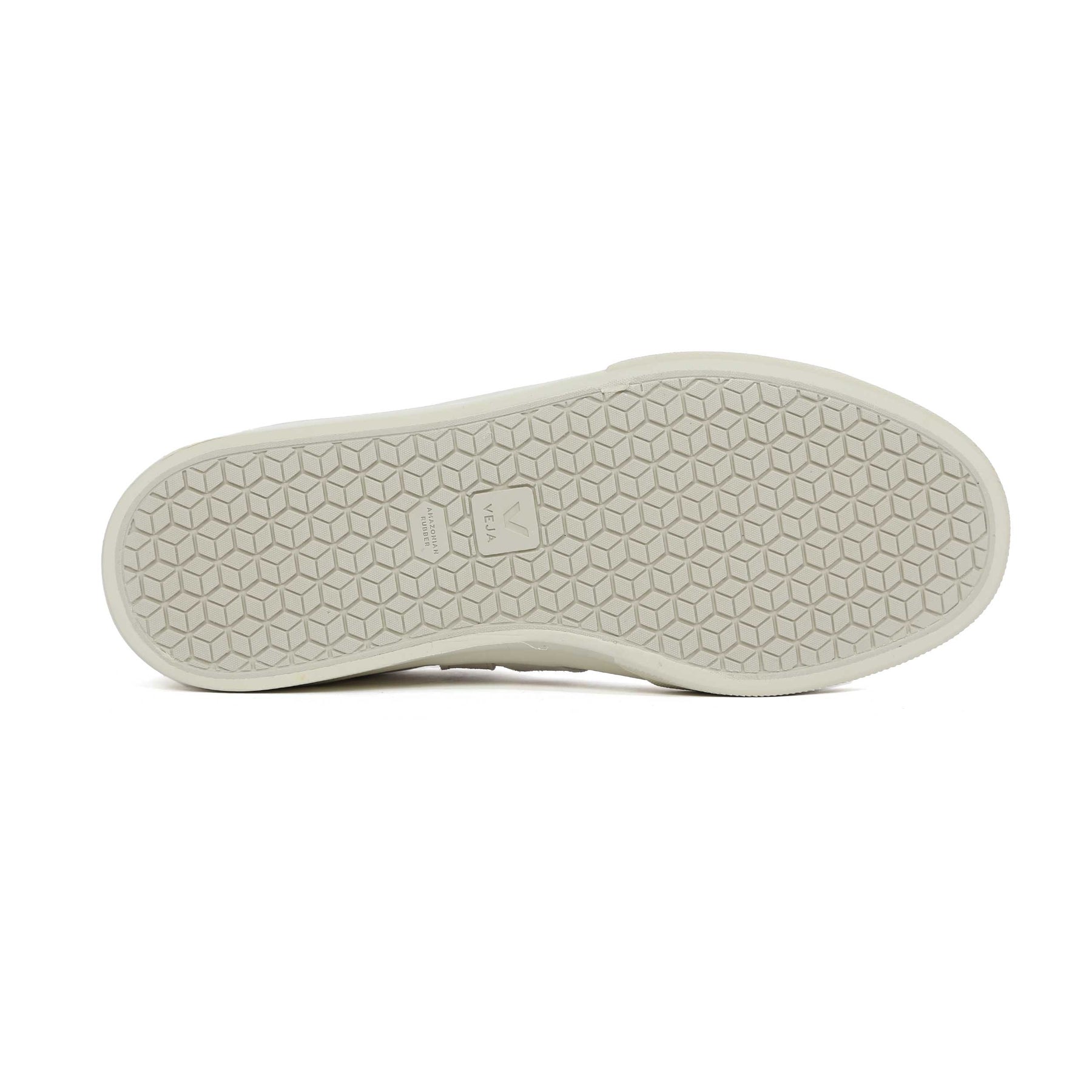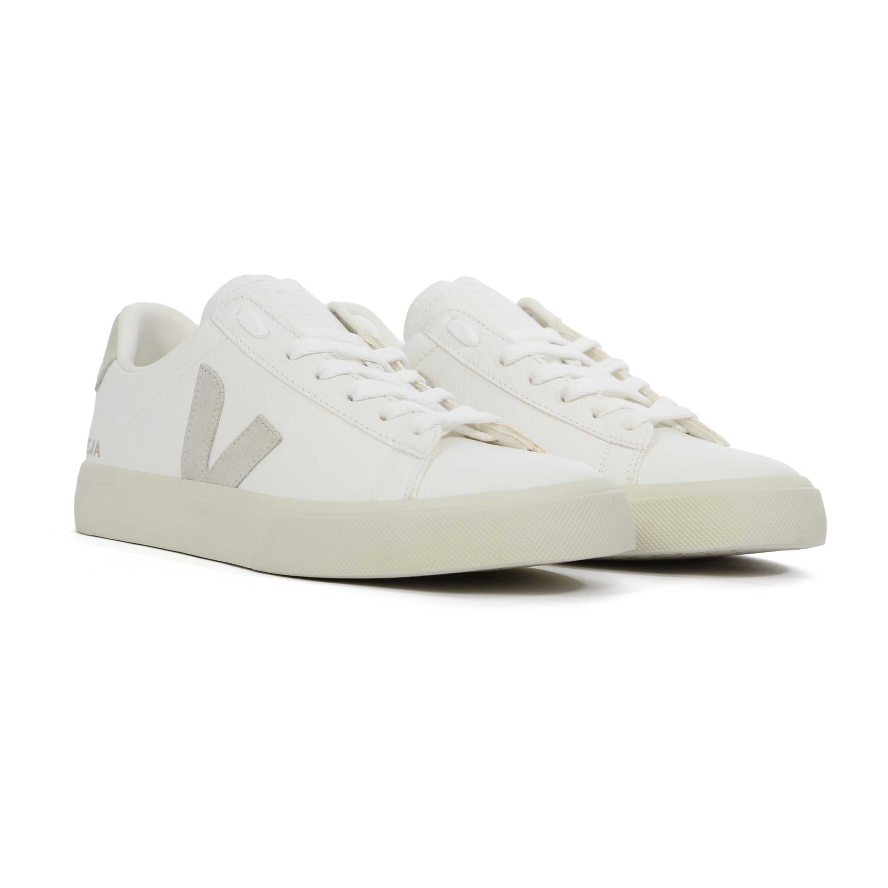 Veja Campo Trainer in Extra White & Natural Suede. This classic style of Veja trainer has arrived in a plain design with a suede Veja logo in a contrasting colour. 7 hole lace up. Contrasting colour suede heel panel with Veja branding. Rubber sole unit.